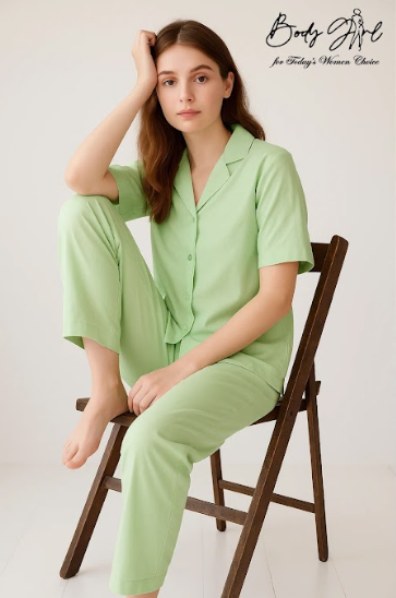 Body Girl Premium Mint Green Linen Pajama Set – Soft, Elegant & Comfortable Women’s Nightwear