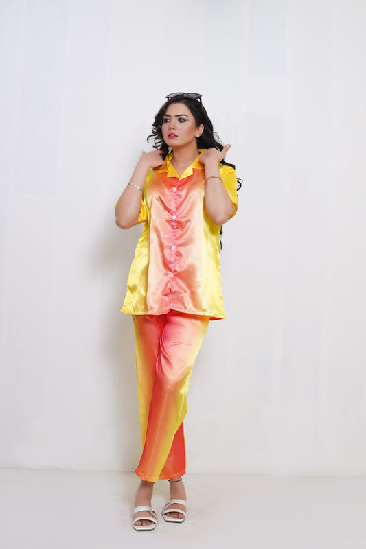 Body Girl Sunset Glow Silk Pajama Set – Luxurious Satin Nightwear for Women