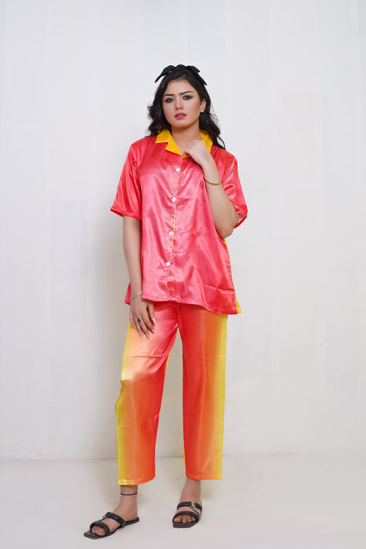 Body Girl Vibrant Yellow-Orange 2-Piece Trouser Shirt Set for Stylish Comfort