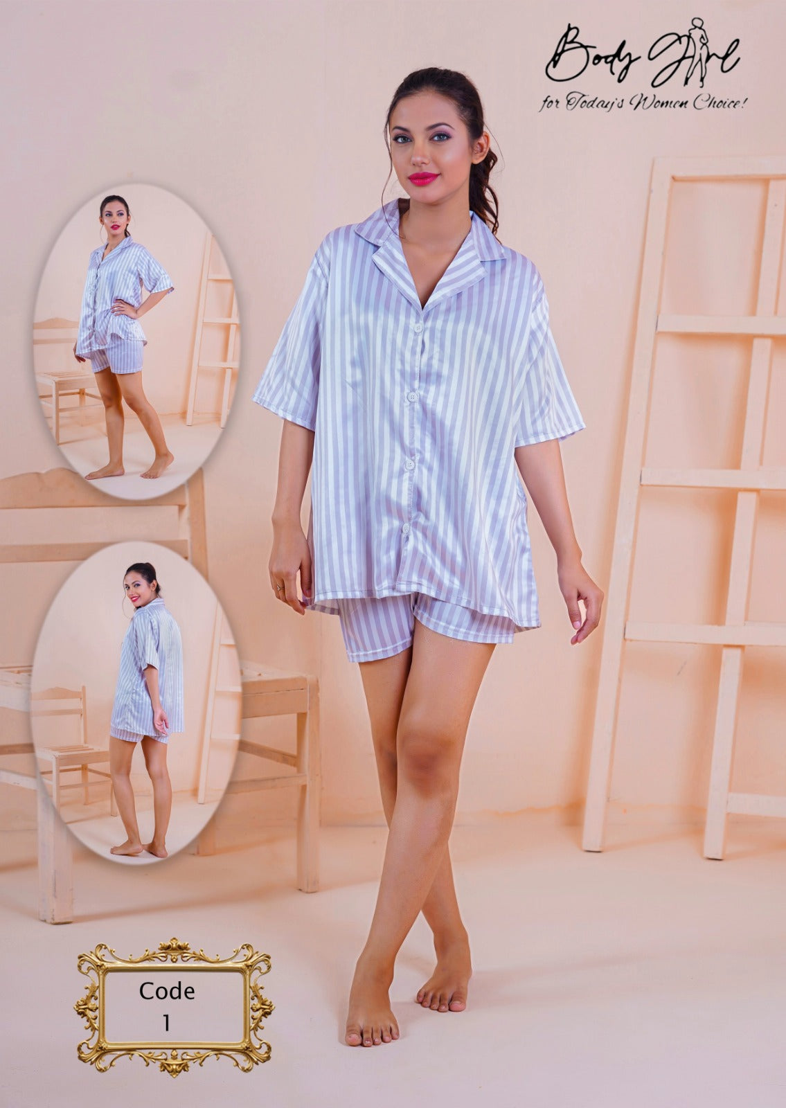Body Girl Print Pajama Set, Short Sleeve Buttons Top & Elastic Waistband Shorts, Women's Sleepwear & Loungewear